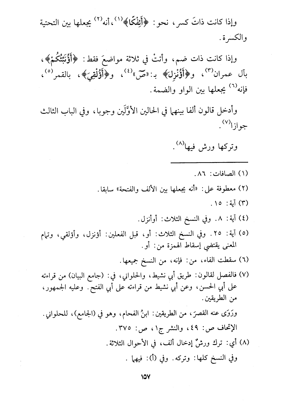 وَأدْخل قالون ألفا بَينهمَا فِي الْحَالين الْأَوَّلين وجوبا، وَفِي الْبَاب الثَّالِث جَوَازًا.