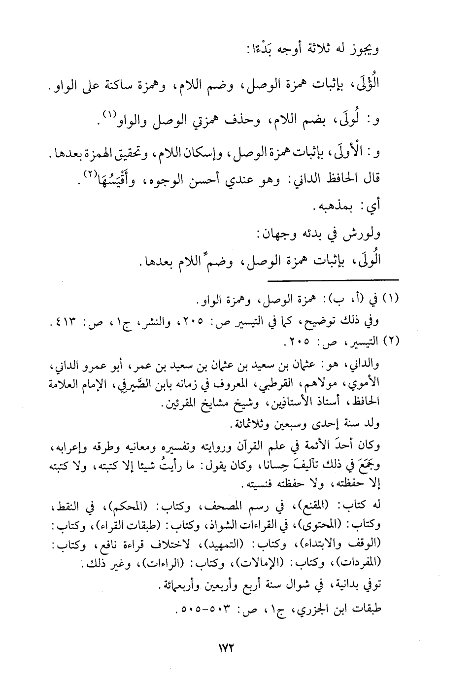 قَالَ الْحَافِظ الداني: وَهُوَ عِنْدِي أحسن الْوُجُوه، وأقيسها.