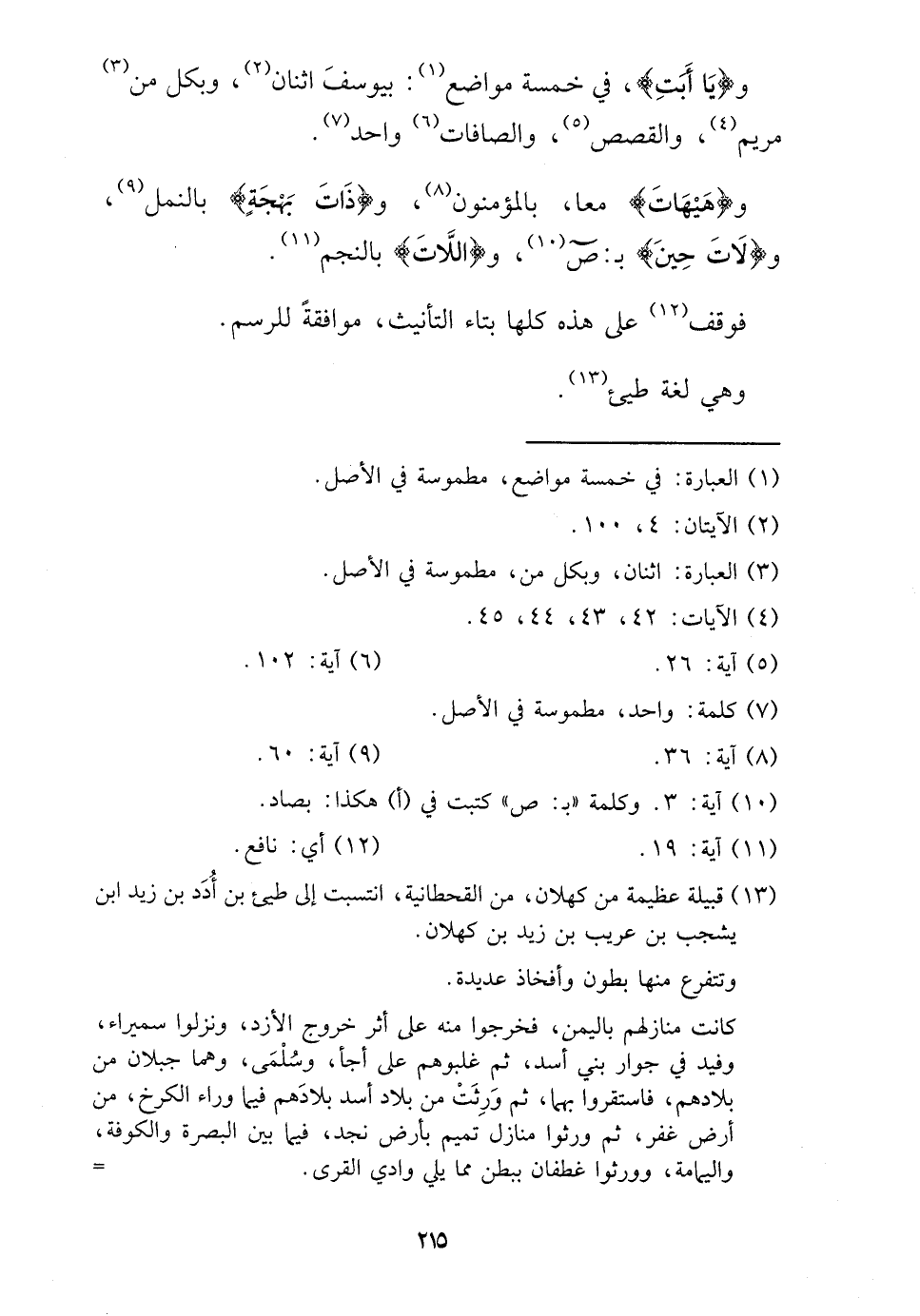 و {هَيْهَات} مَعًا، بالمؤمنون، و {ذَات بهجة} بالنمل، و {لات حِين} ب: ص، و {الآت} بِالنَّجْمِ.