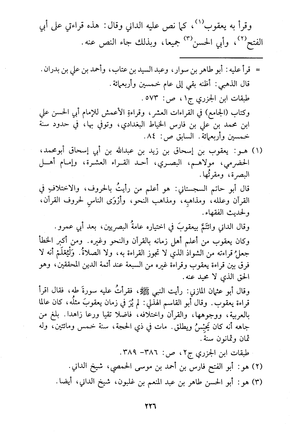 وَقَرَأَ بِهِ يَعْقُوب، كَمَا نَص عَلَيْهِ الداني وَقَالَ: هَذِه قراءتي على أبي الْفَتْح، وَأبي الْحسن جَمِيعًا، وَبِذَلِك جَاءَ النَّص عَنهُ.