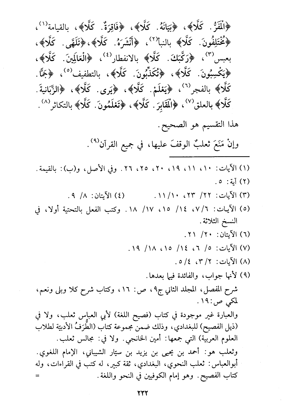 وَإِن منع ثَعْلَب الْوَقْف عَلَيْهَا، فِي جَمِيع الْقُرْآن.