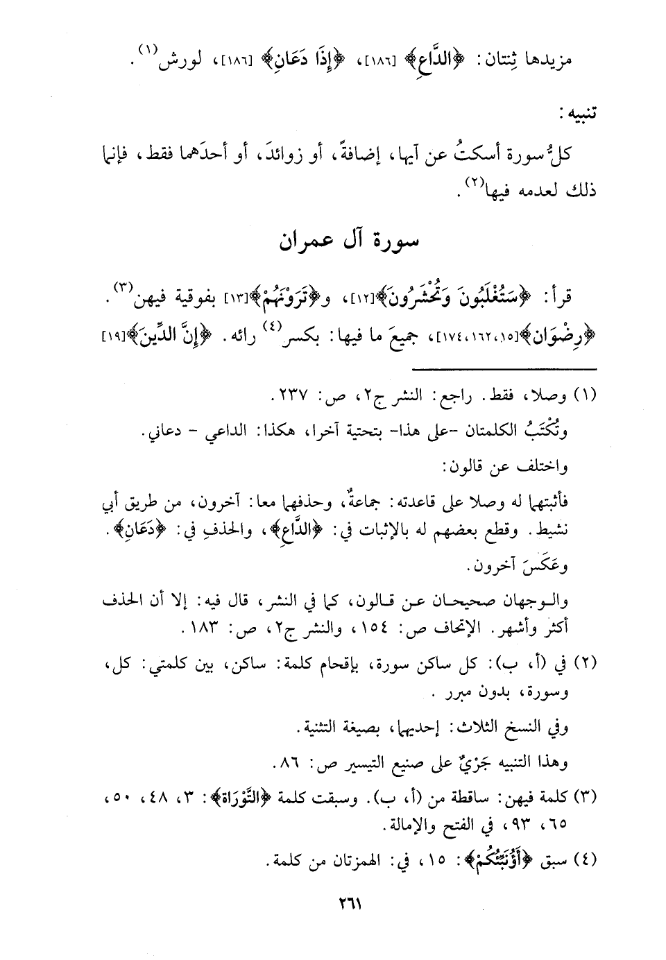 قَرَأَ: {ستغلبون وتحشرون} ، و {ترونهم} بفوقية فِيهِنَّ. {رضوَان} ، جَمِيع مَا فِيهَا: بِكَسْر رائه. {إِن الدّين}