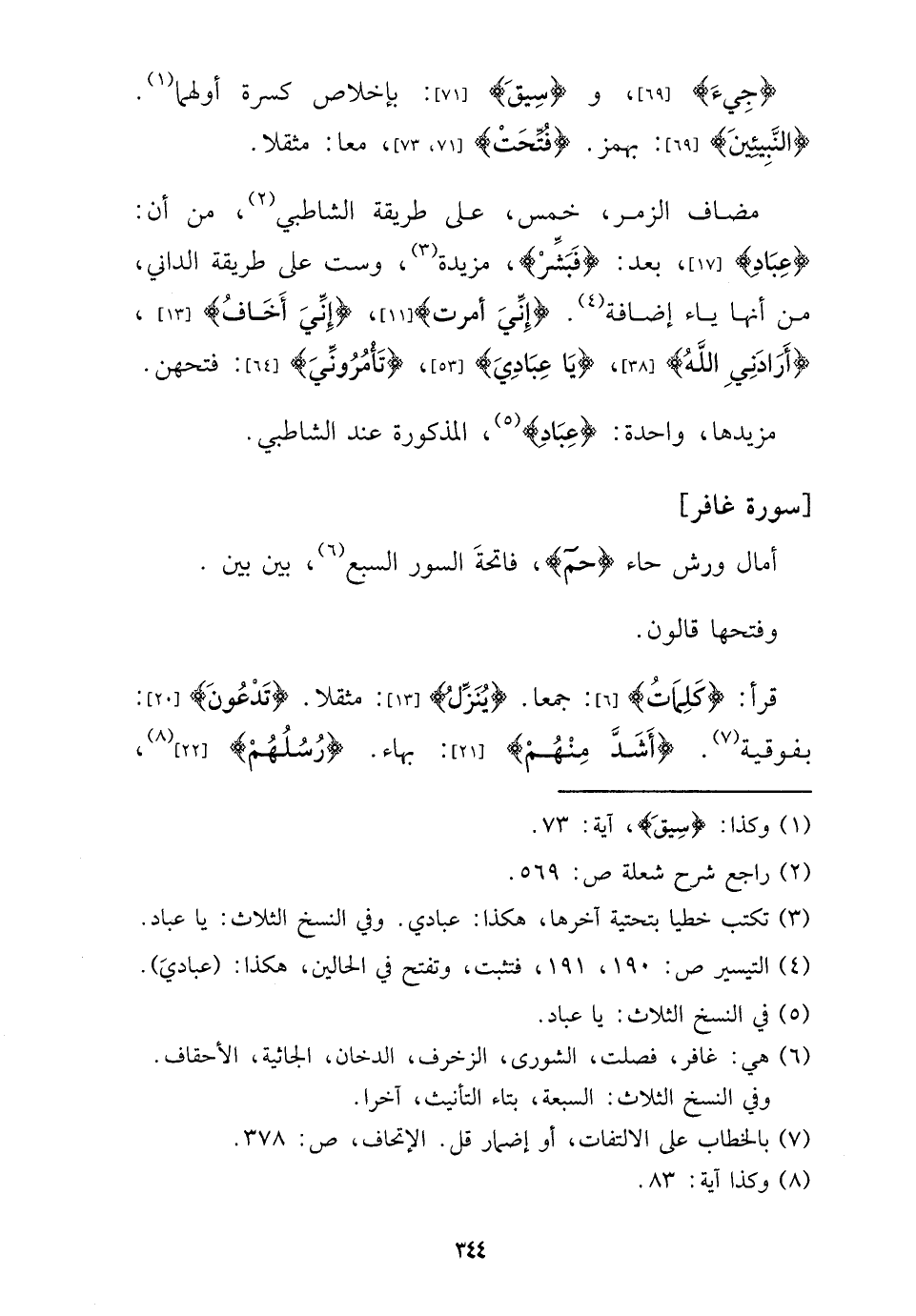 مزيدها، وَاحِدَة: {عباد} ، الْمَذْكُور عِنْد الشاطبي.