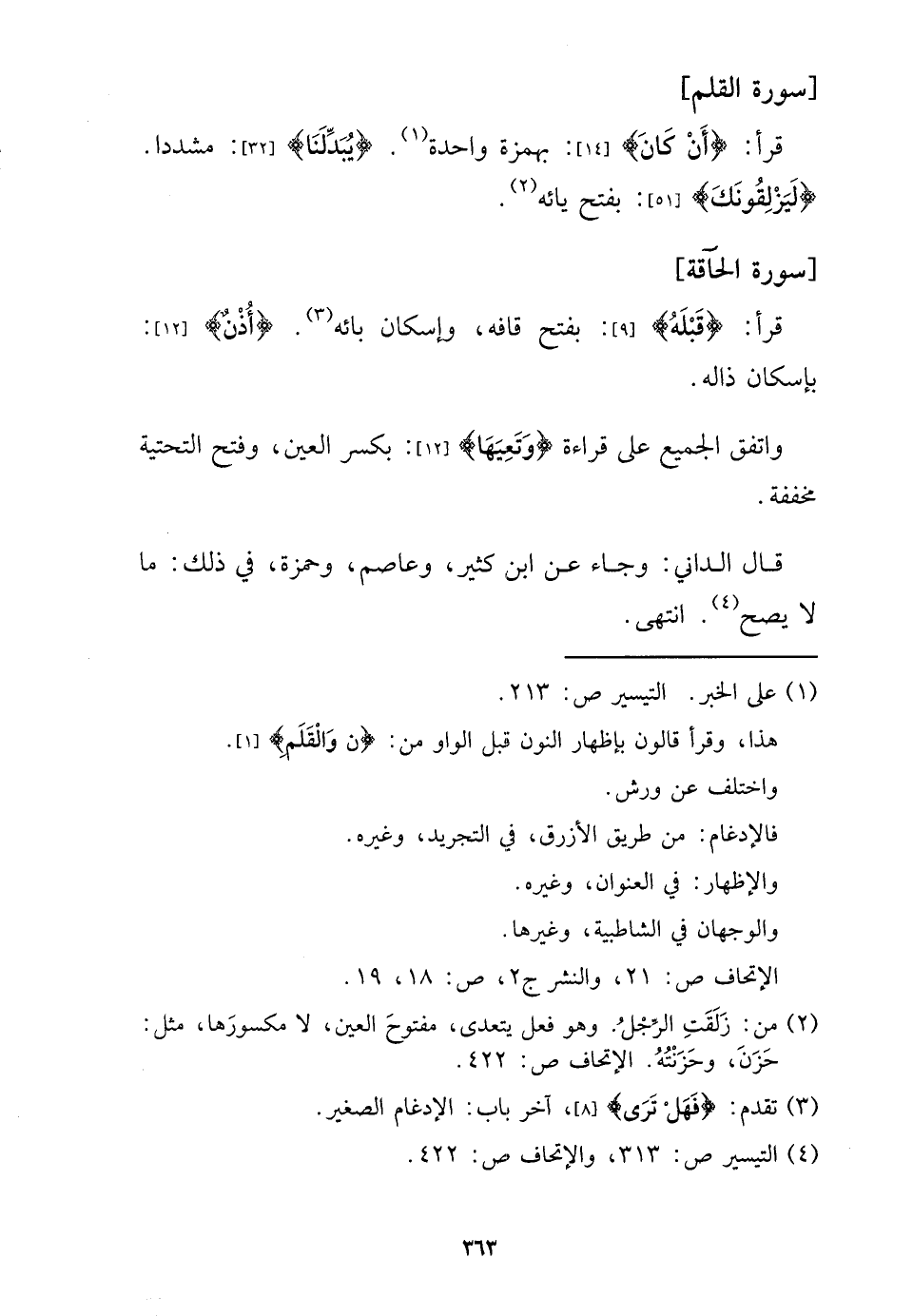 قَالَ الداني: وَجَاء عَن ابْن كثير، وَعَاصِم، وَحَمْزَة، فِي ذَلِك: مَا لَا يَصح. انْتهى.