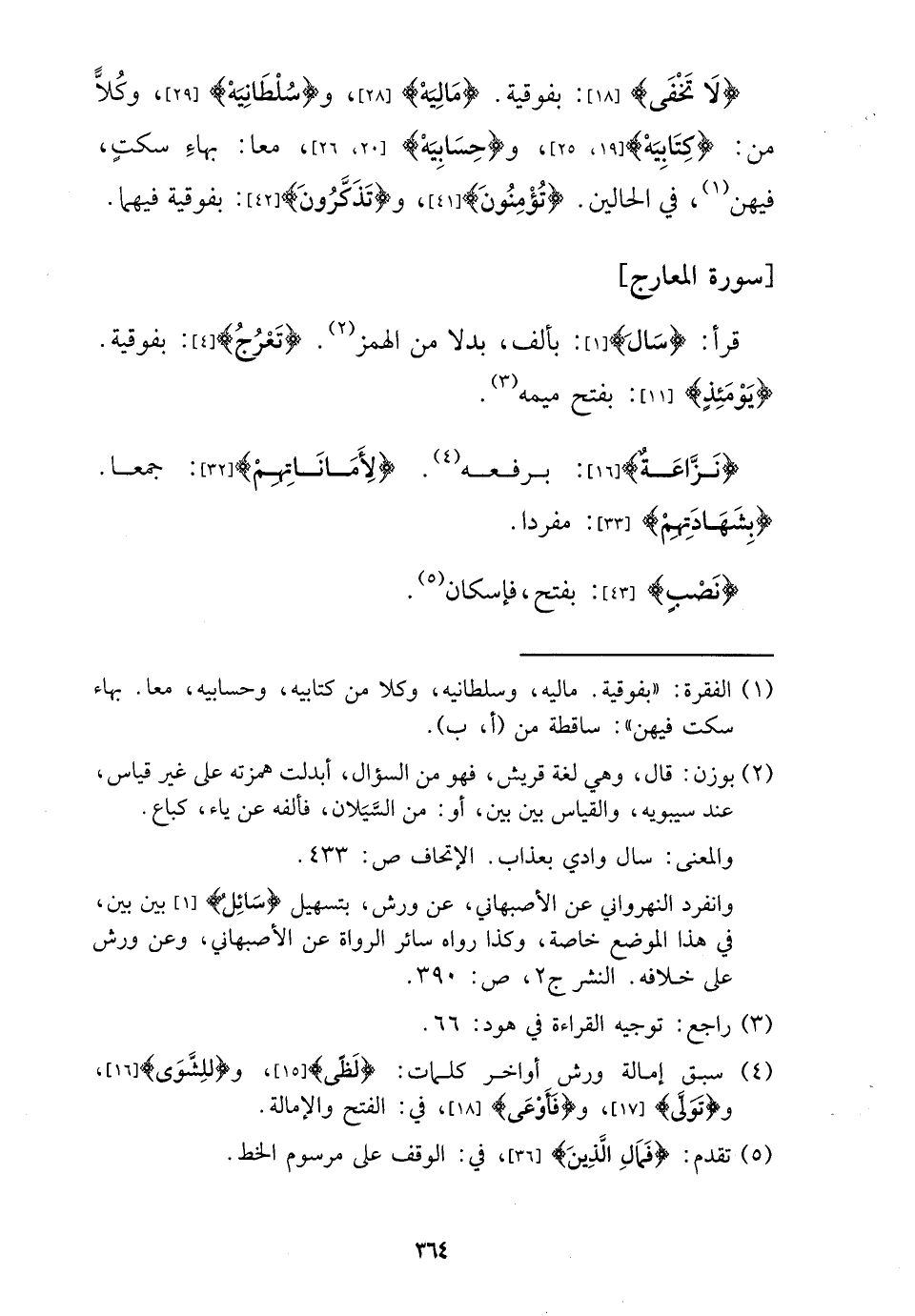 قَرَأَ: {سَالَ} : بِأَلف، بَدَلا من الْهَمْز. {تعرج} : بفوقية. {يَوْمئِذٍ} : بِفَتْح ميمه.