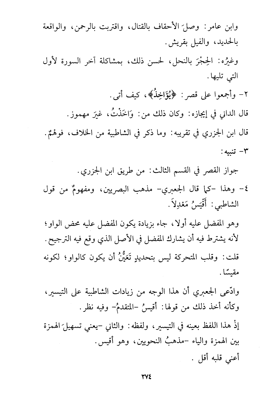 4 - وَهَذَا - كَمَا قَالَ الجعبري - مَذْهَب الْبَصرِيين، وَمَفْهُوم من قَول الشاطبي: أَقيس معدلا.