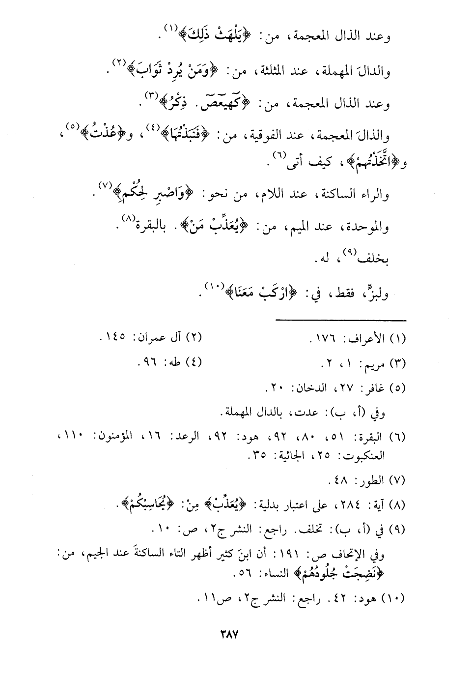 وَعند الذَّال الْمُعْجَمَة، من: {كهيعص. ذكر} .