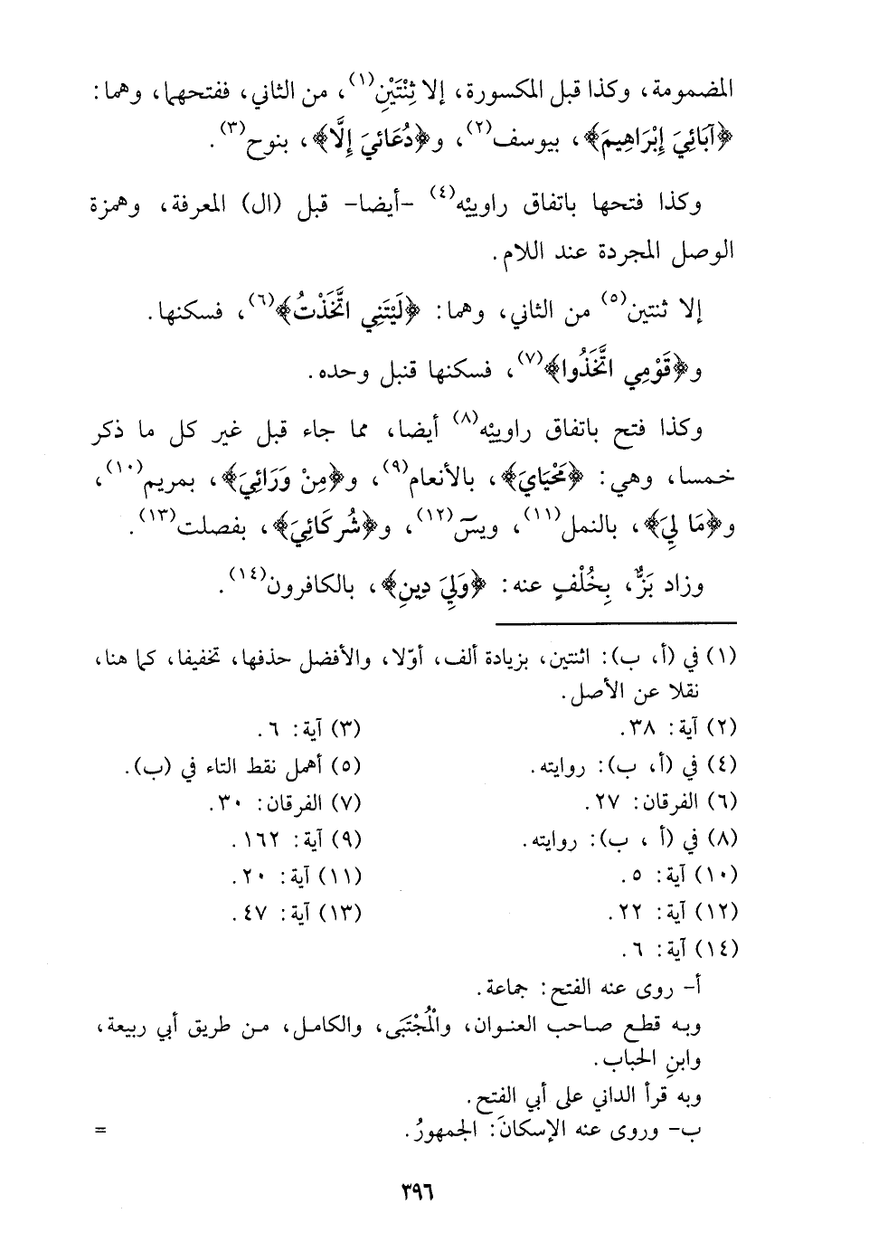 المضمومة، وَكَذَا قبل الْمَكْسُورَة، إِلَّا ثِنْتَيْنِ، من الثَّانِي، ففتحهما، وهما: {آبَائِي إِبْرَاهِيم} ، بِيُوسُف، و {دعائي إِلَّا} ، بِنوح.