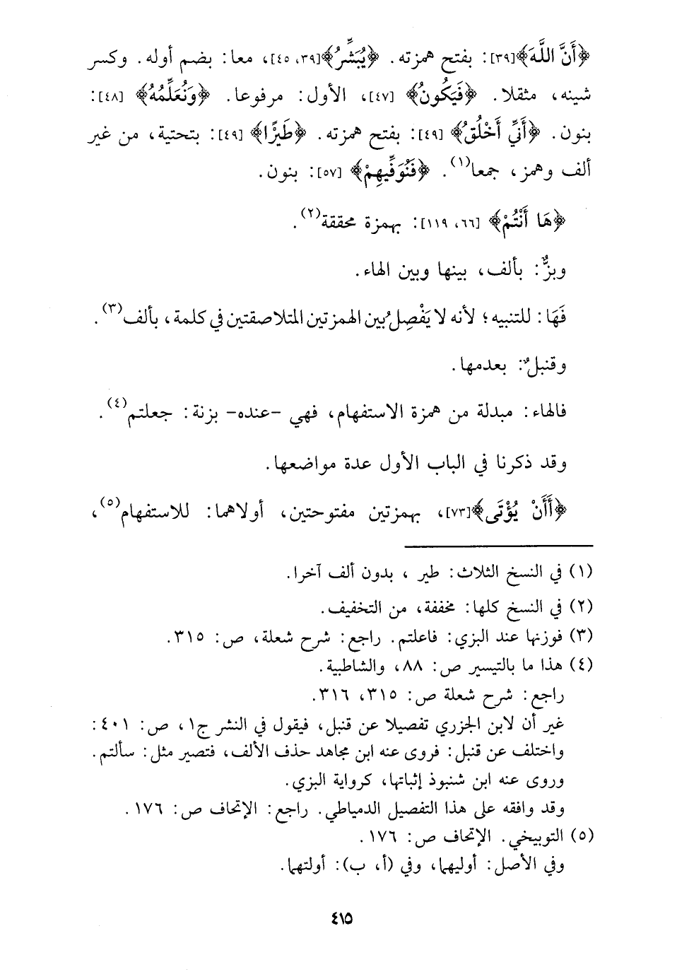 وَقد ذكرنَا فِي الْبَاب الأول عدَّة موَاضعهَا. {أأن يُؤْتى} ، بهمزتين مفتوحتين، أولاهما: للاستفهام،