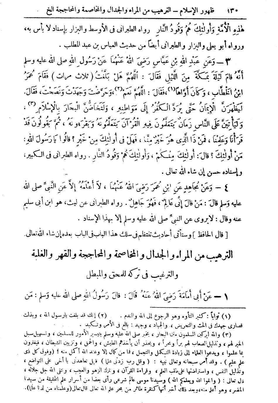 ظهور الاسلام - الترهيب من المراء والجدال والمخاصمة والمحاججة الخ