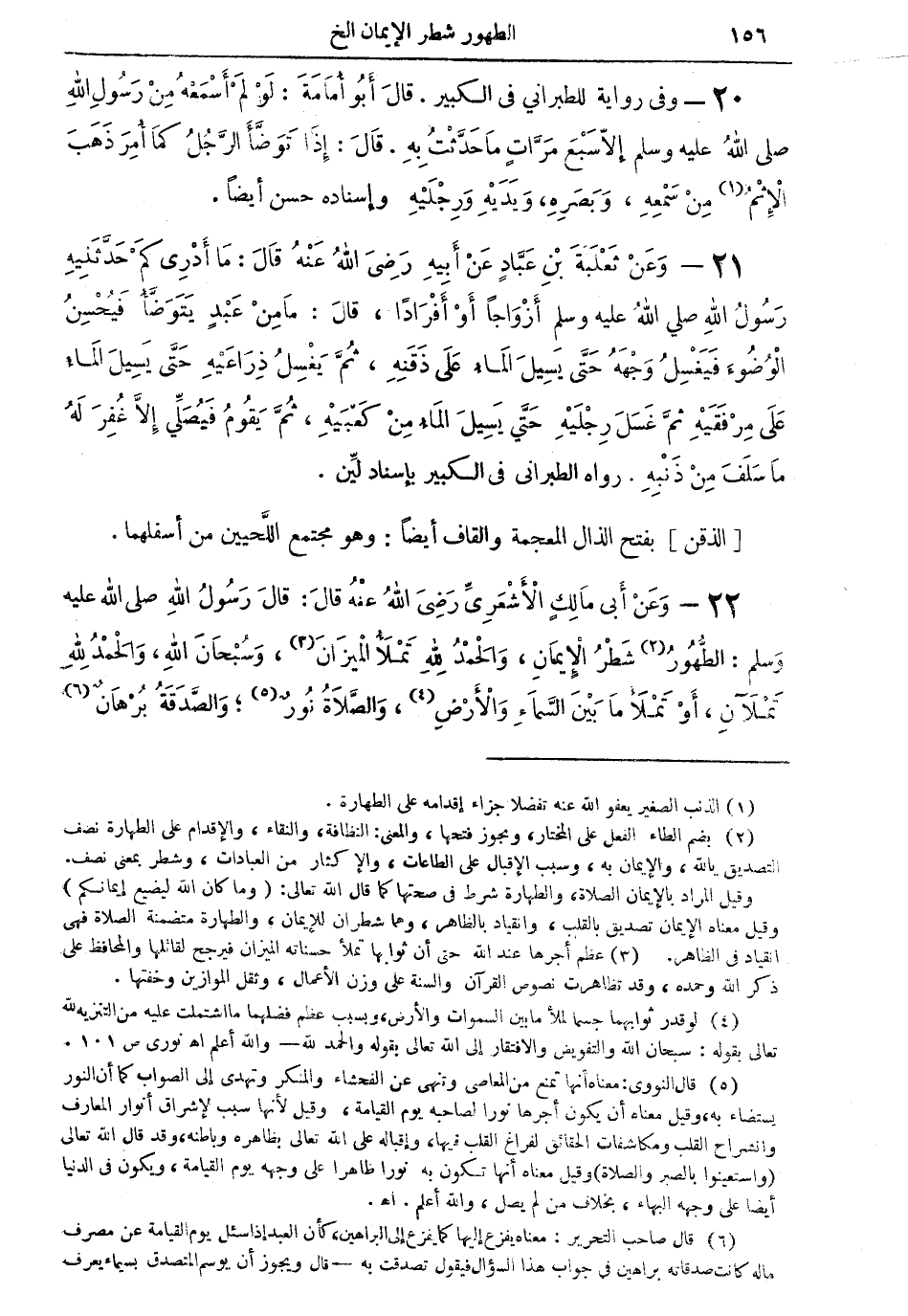 (¬2) بضم الطاء الفعل على المختار، ويجوز فتحها، والمعنى: النظافة، والنقاء، والإقدام على الطهارة نصف التصديق بالله، والإيمان به، وسبب الإقبال على الطاعات، والإكثار من العبادات، وشطر بمعنى نصف.