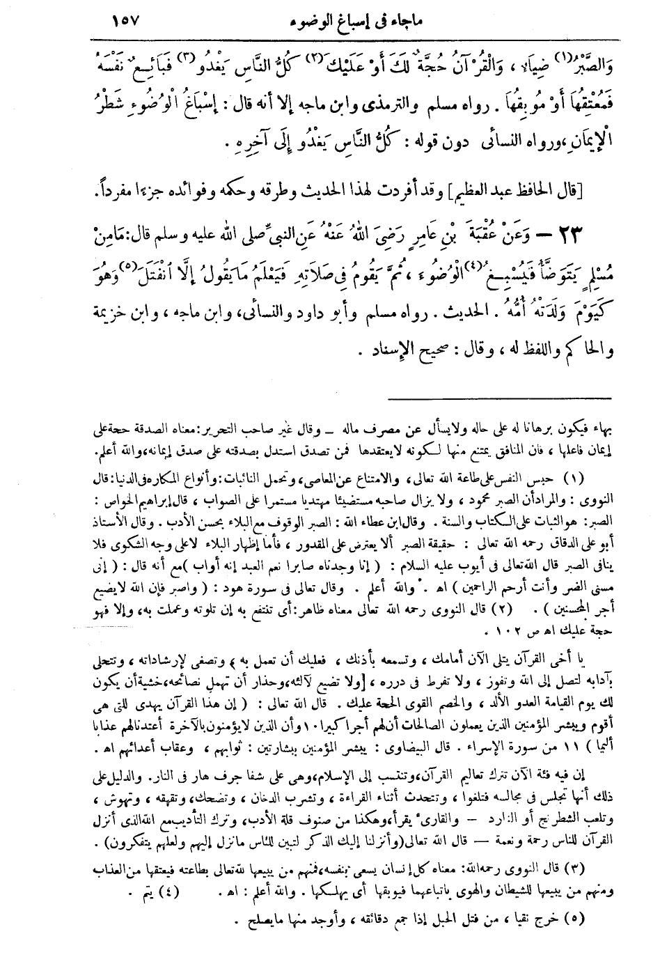 33 - وعن عقبة بن عامرٍ رضي الله عنه عن النبى صلى الله عليه وسلم قال: ما من مسلمٍ يتوضأ فيسبغ (¬4) الوضوء، ثم يقوم في صلاته فيعلم ما يقول إلا انفتل (¬5) وهو كيوم ولدته أُمه. الحديث. رواه مسلم وأبو داود والنسائي، وابن ماجه، وابن خزيمة والحاكم واللفظ له، وقال: صحيح الإسناد.
