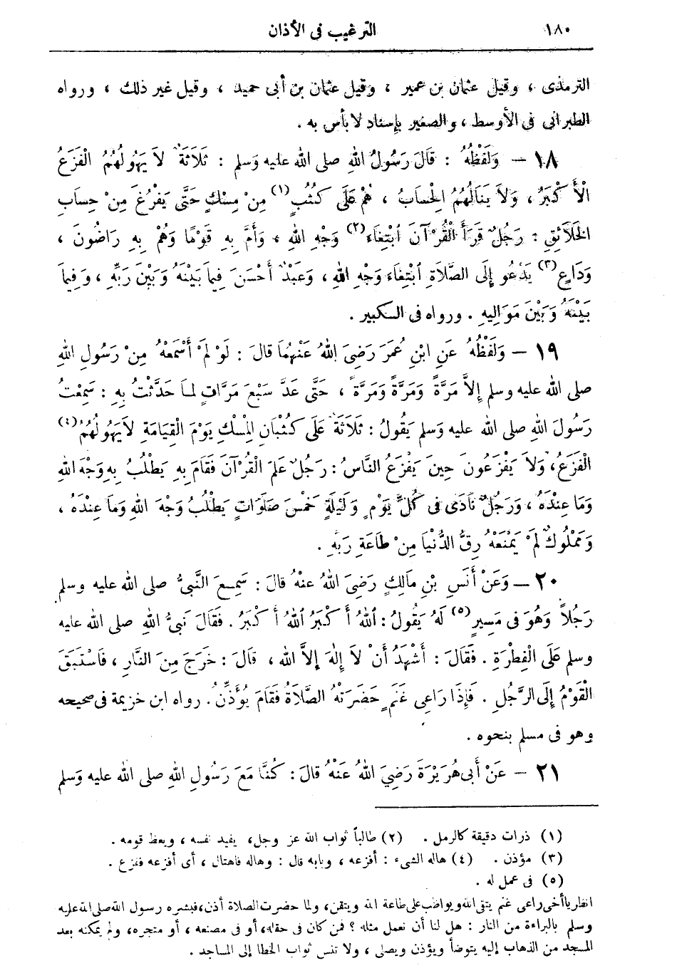 له يقول: الله أكبر الله أكبر فقال نبىُّ الله صلى الله عليه وسلم على الفطرة. فقال: أشهد أن لا إله إلا الله، قال: خرج من النار، فاستبق القومُ إلى الرَّجُلِ. فإذا راعى غنمٍ حضرته الصلاة فقام يُؤذنُ. رواه ابن خزيمة في صحيحه وهو في مسلم بنحوه.
