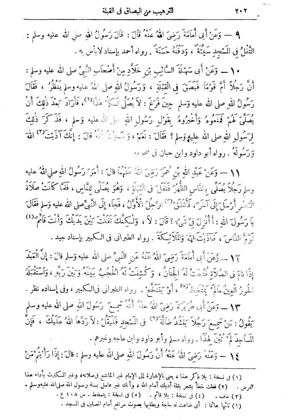 13 - وعن أبي هريرة رضي الله عنه أنه سمع رسول الله صلى الله عليه وسلم يقول: من سمع رجلاً ينشدُ ضالَّةً (¬6) في المسجد فليقل: لا ردَّها الله عليك، فإن المساجد لم تُبنَ لهذا. رواه مسلم وأبو داود وابن ماجه وغيرهم.