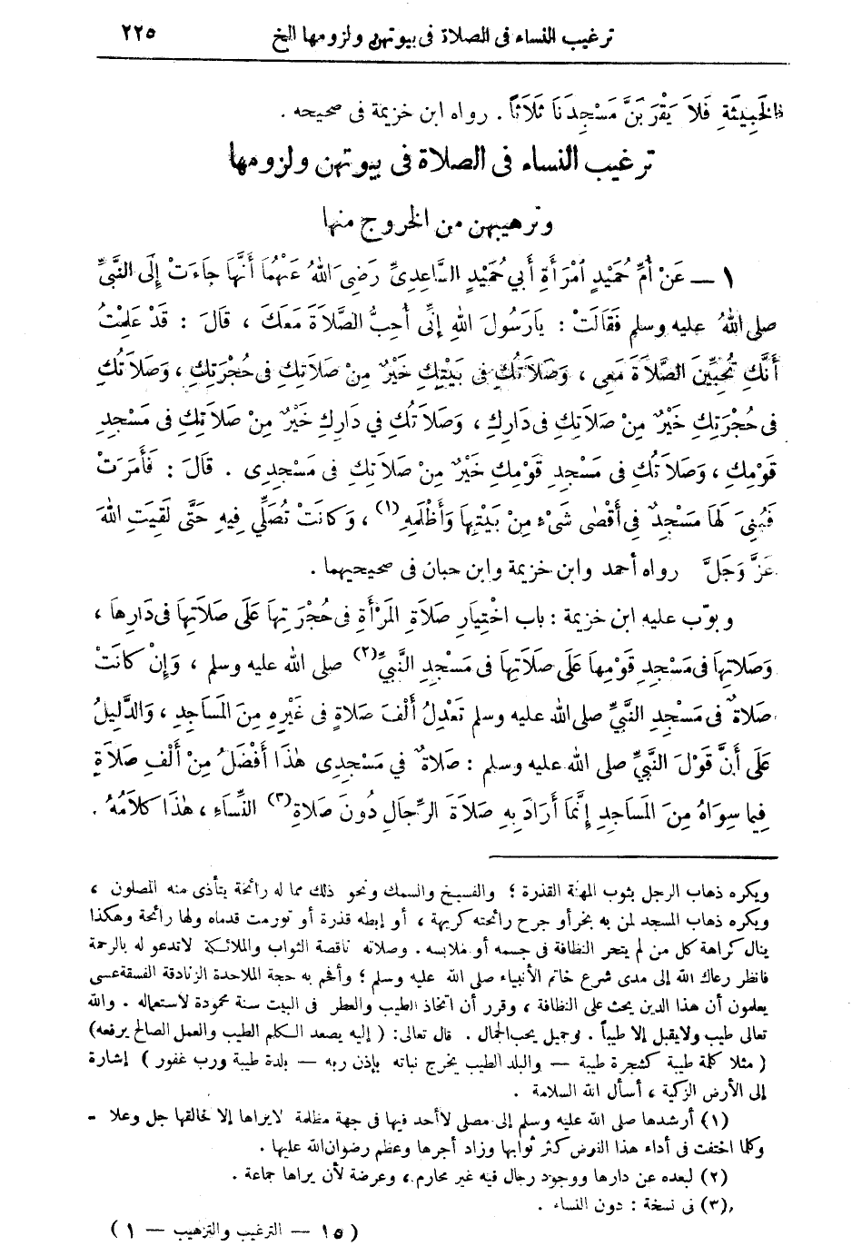 ترغيب النساء في الصلاة في بيوتهن ولزومها