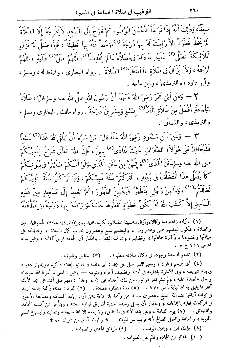 2 - وعن ابن عمر رضي الله عنهما أن رسول الله صلى الله عليه وسلم قال: صلاة الجماعة أفضل من صلاة الفذ (¬6) بسبعٍ وعشرين درجة. رواه مالك والبخاري ومسلم، والترمذي، والنسائي.