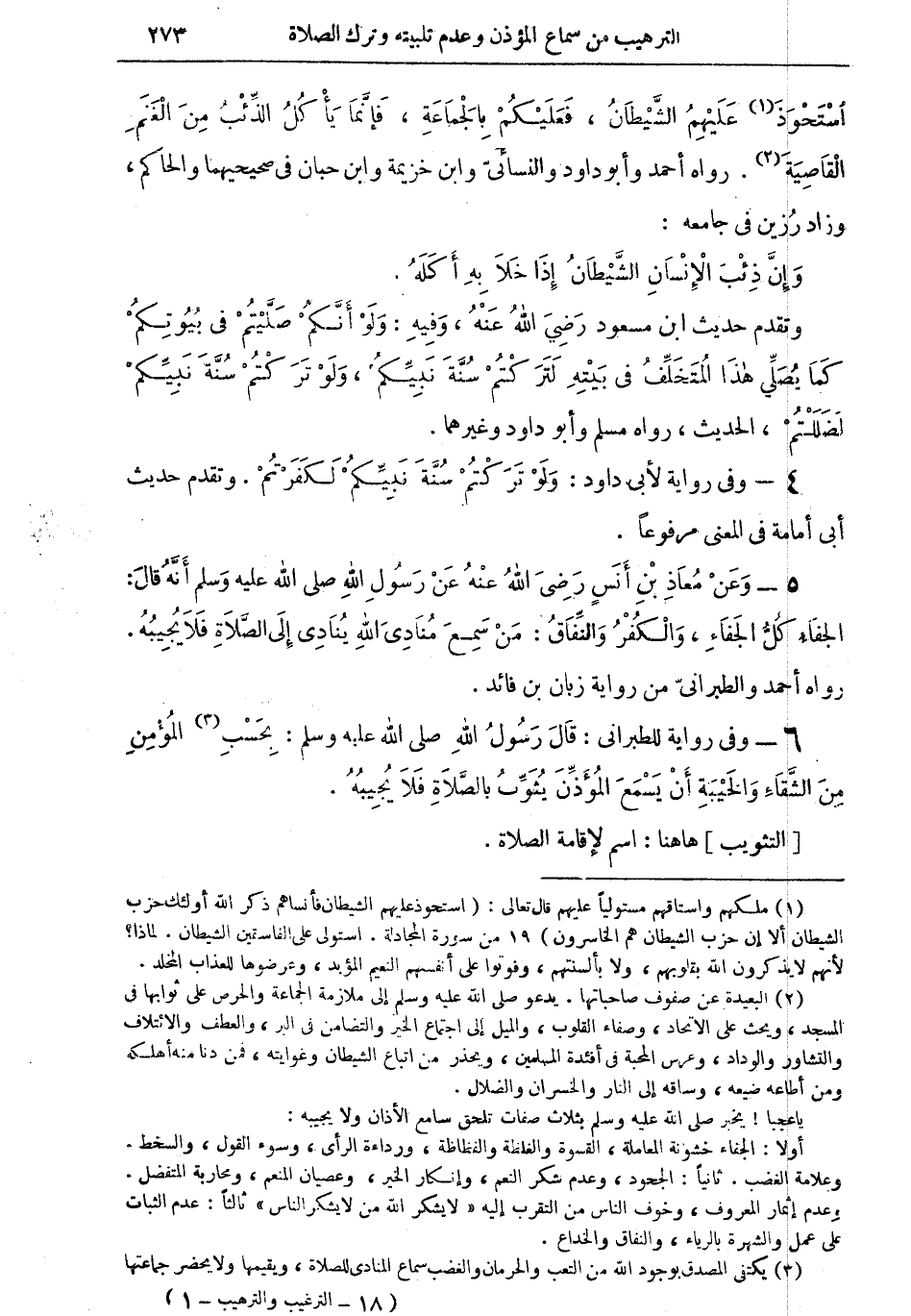 5 - وعن معاذ بن أنسٍ رضي الله عنه عن رسول الله صلى الله عليه وسلم أنه قال: الجفاء كُلُّ الجفاء، والكفر والنفاق: من سمع منادى الله ينادى إلى الصلاة فلا يُجيبه. رواه أحمد والطبراني من رواية زبان بن فائد.
