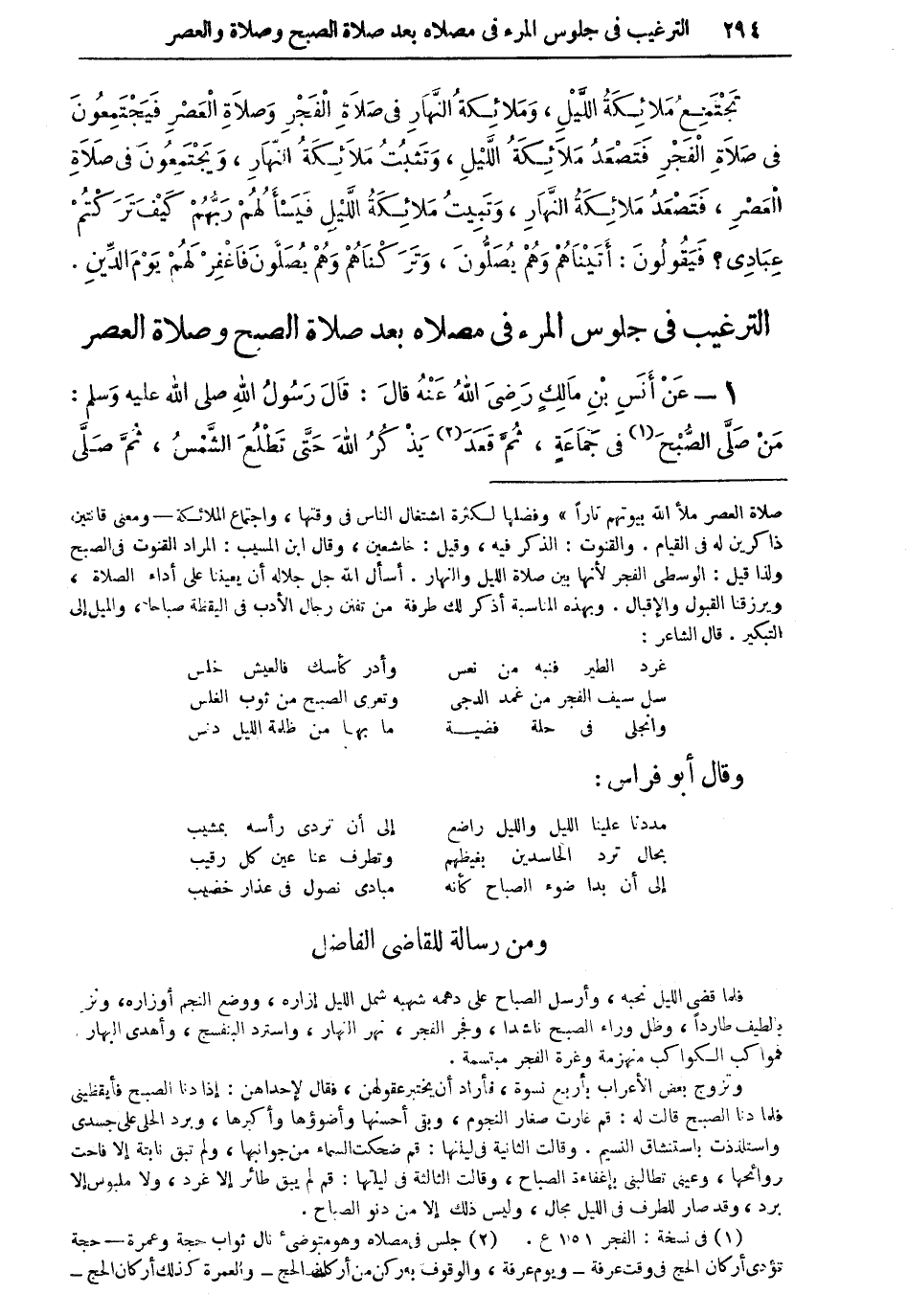 الترغيب في جلوس المرء في مصلاه بعد صلاة الصبح وصلاة العصر