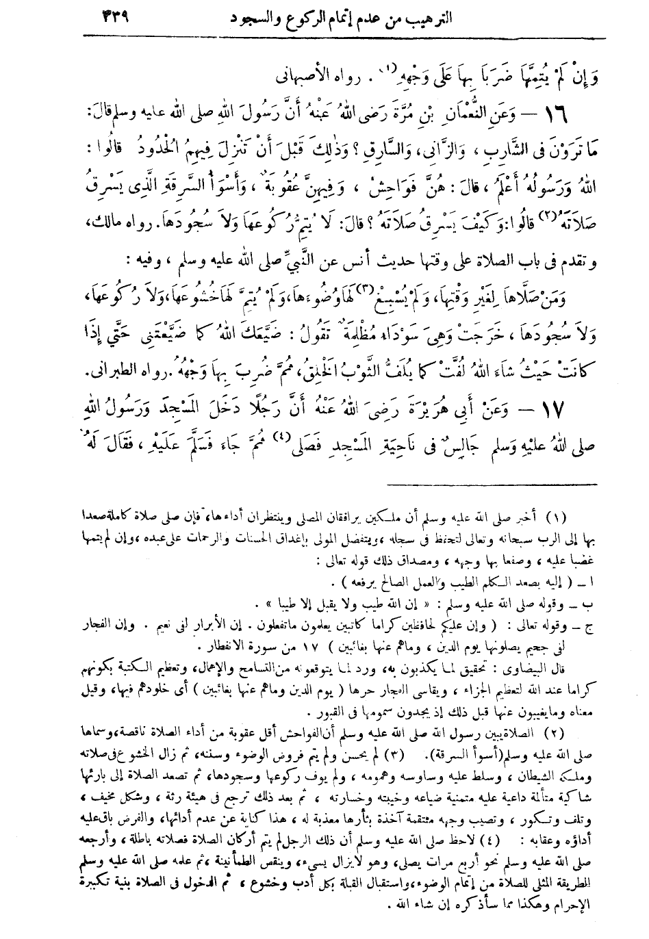 (¬2) الصلاة يبين رسول الله صلى الله عليه وسلم أن الفواحش أقل عقوبة من أداء الصلاة ناقصة، وسماها صلى الله عليه وسلم (أسوأ السرقة).