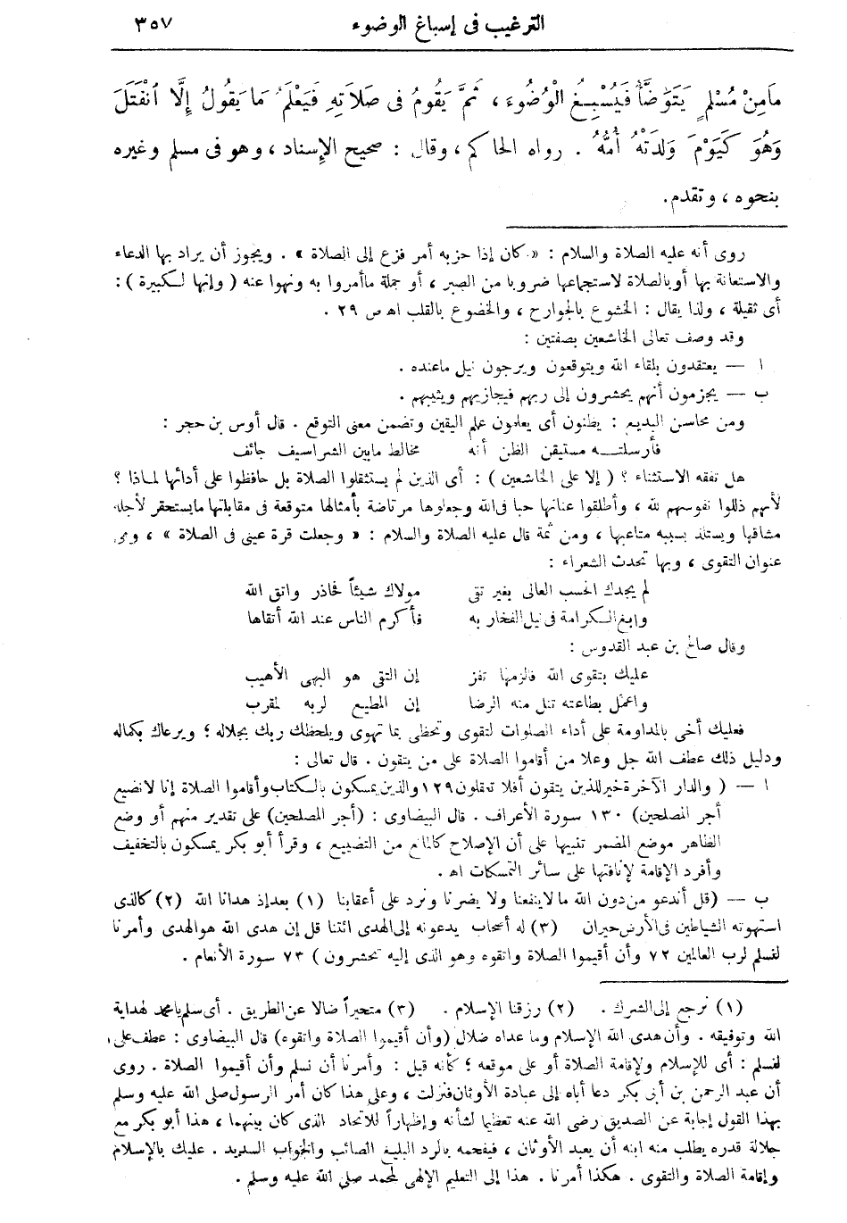 ما من مسلمٍ يتوضأ فيسبغ الوضوء، ثم يقوم في صلاته فيعلم مايقول إلا انفتل وهو كيوم ولدته أمه. رواه الحاكم، وقال: صحيح الإسناد، وهو في مسلم وغيره بنحوه، وتقدم.