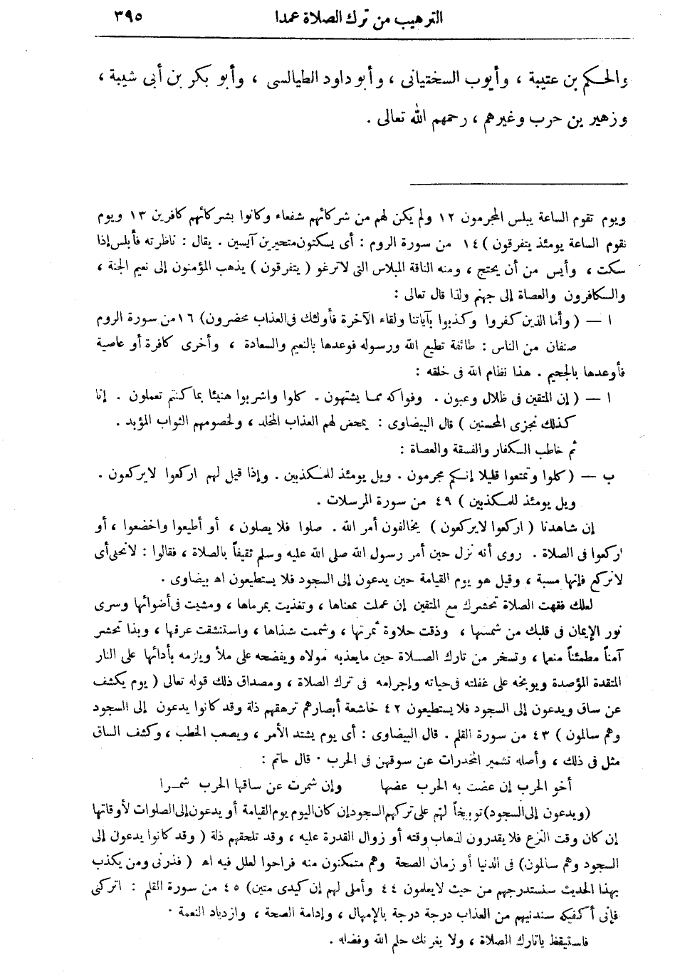 لعلك فقهت الصلاة تحشرك مع المتقين إن عملت بمعناها، وتغذيت بمرماها، ومشيت في أضوائها وسرى نور الإيمان في قلبك من شمسها، وذقت حلاوة ثمرتها،، وشممت شذاها، واستنشقت عرفها، وبذا تحشر آمناً مطمئناً منعما، وتسخر من تارك الصلاة حين ما يعذبه مولاه ويفضحه على ملأ ويلزمه بأدائها على النار الموقدة المؤصدة ويوبخه على غفلته في حياته وإجرامه في ترك الصلاة، ومصداق ذلك قوله تعالى (يوم يكشف عن ساق ويدعون إلى السجود فلا يستطيعون 42 خاشعة أبصارهم ترهقهم ذلة وقد كانوا يدعون إلى السجود وهم سالمون) 43 من سورة القلم. قال البيضاوى: أي يوم يشتد الأمر، ويصعب الخطب، وكشف الساق مثل في ذلك، وأصله تشمير المخدرات عن سوقهن في الحرب. قال حاتم: