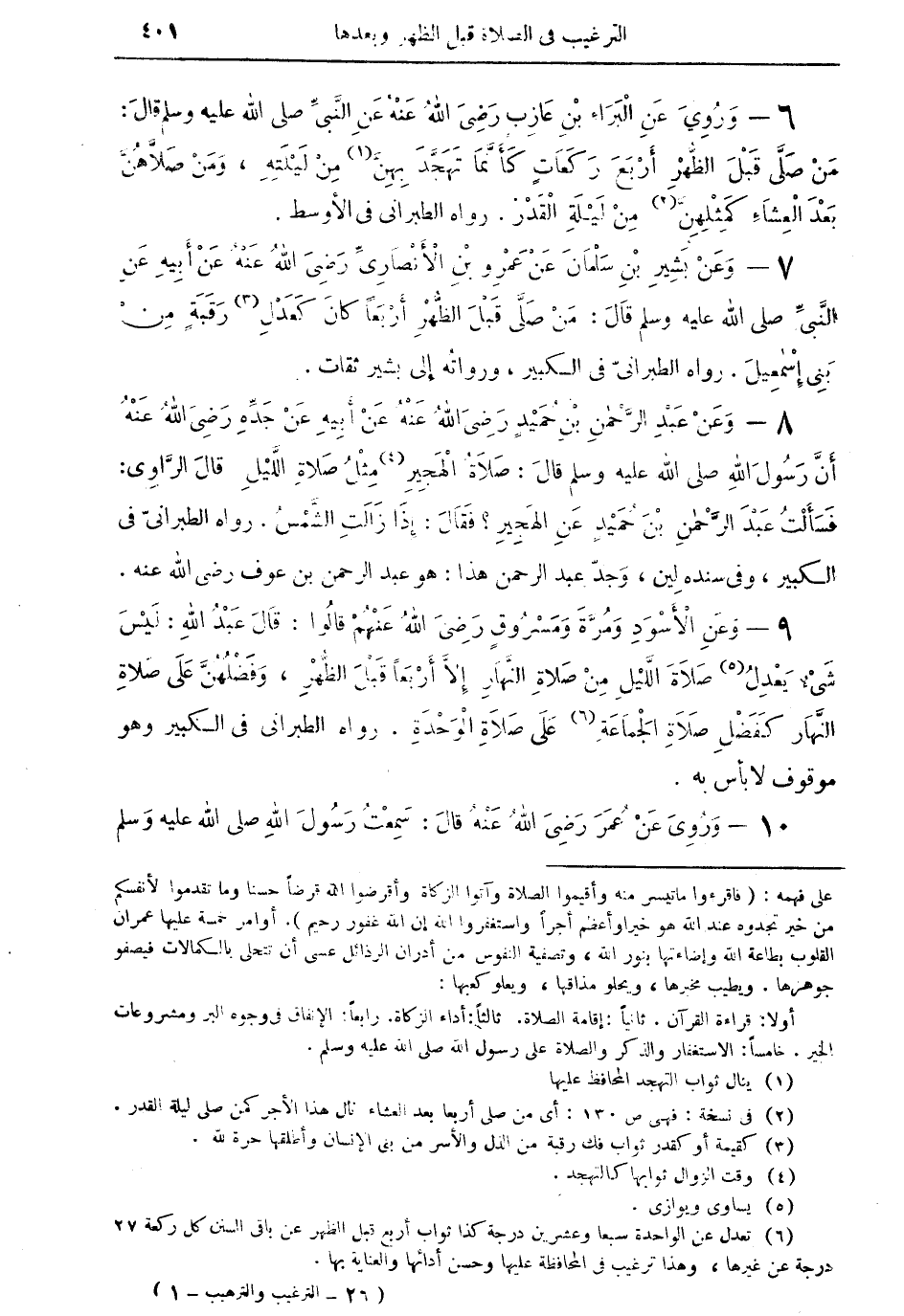 7 - وعن بشير بن سلمان عن عمرو بن الأنصارى رضي الله عنه عن أبيه عن النبى صلى الله عليه وسلم قال: من صلى قبل الظهر أربعاً كان كعدل (¬3) رقبة من بنى إسماعيل. رواه الطبراني في الكبير، ورواته إلى بشير ثقات.
