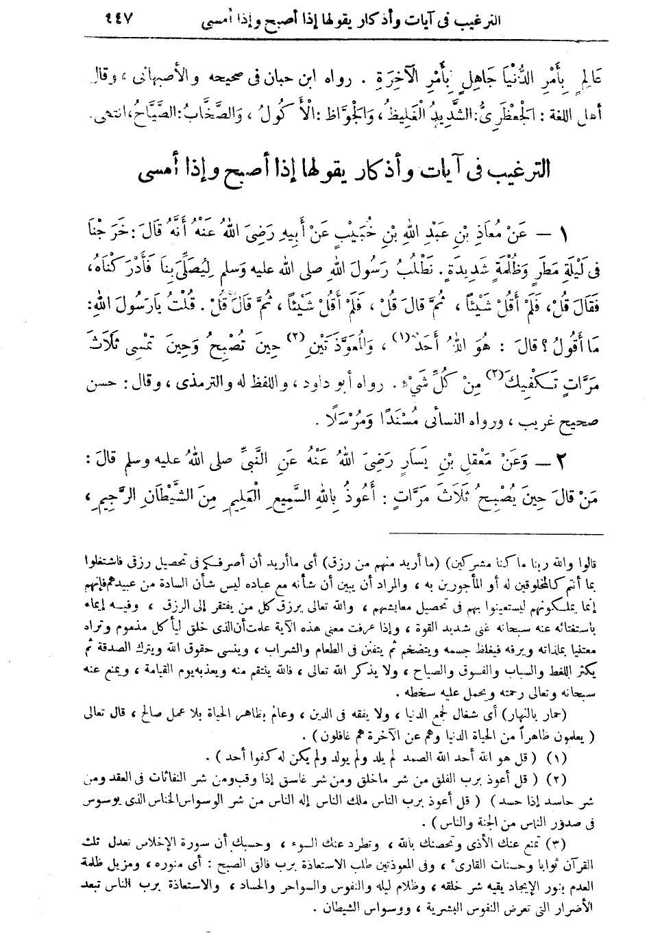 الترغيب في آيات وأذكار يقولها إذا أصبح وإذا أمسى