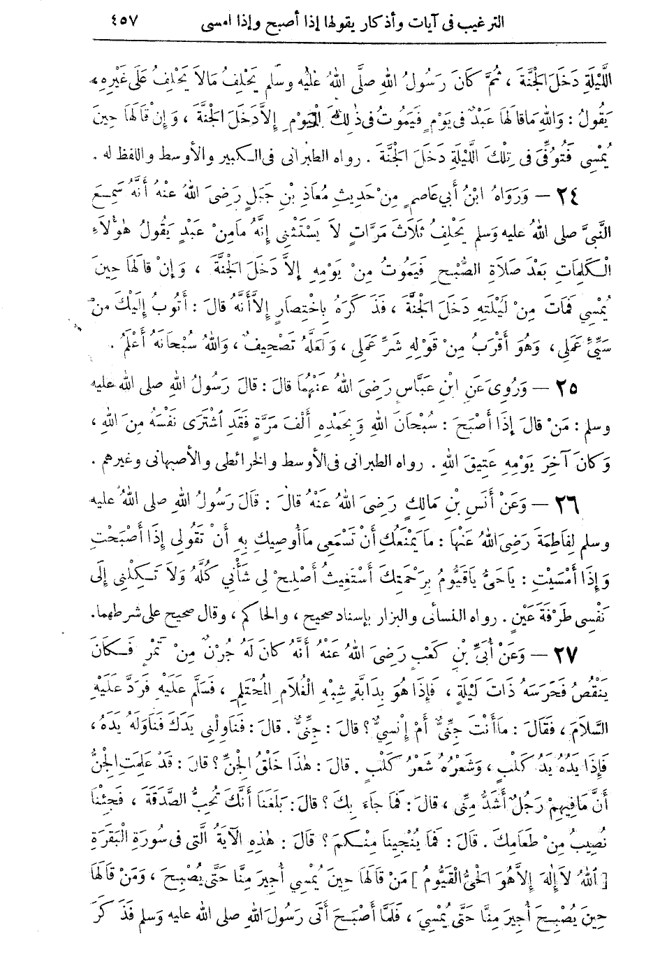 25 - وروى عن ابن عباس رضي الله عنهما قال: قال رسول الله صلى الله عليه وسلم: من قال إذا أصبح: سبحان الله وبحمده ألف مرة فقد اشترى نفسه من الله، وكان آخر يومه عتيق الله. رواه الطبراني في الأوسط والخرائطى والأصبهاني وغيرهم.