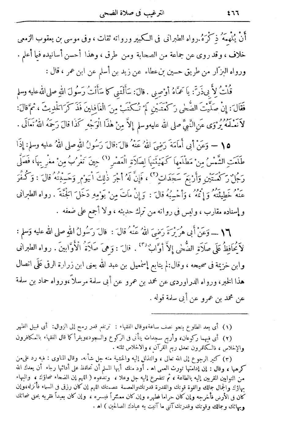 (¬3) كثير الرجوع إلى الله تعالى، والتذلل إليه والخشية منه جل شأنه. وقال المناوى: فيه رد على من كرهها، وقال: إن إدامتها تورث العمى أهـ. أود منك أيها المسلم أن تحافظ على أدائها رجاء أن يعدك الله من التوابين المقربين إليه بالطاعة، ثم تتضرع إليه جل وعلا، وتدعوه (اللهم إن الضحاء ضحاؤك، والبهاء بهاؤك والجمال جمالك والقوة قوتك والقدرة قدرتك والعصمة عصمتك اللهم إن كان رزقى في السماء فأنزله، وإن كان في الأرض فأخرجه وإن كان حراما فطهره وإن كان معسراً فيسره، وإن كان بعيداً فقربه بحق ضحائك وبهائك وجمالك وقوتك آتنى ما آتيت به عبادك الصالحين) أهـ.