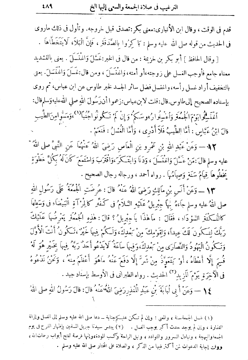 12 - وعن عبد الله بن عمرو بن العاص رضي الله عنهما عن النبى صلى الله عليه وسلم قال: من غسل واغتسل، ودنا وابتكر، واقترب واستمع كان له بكل خطوةٍ يخطوها قيام سنةٍ وصيامها. رواه أحمد، ورجاله رجال الصحيح.