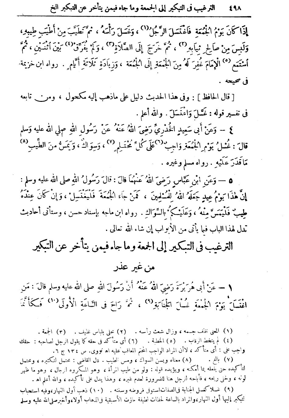 الترغيب في التبكير إلى الجمعة وما جاء فيمن يتأخر عن التبكير من غير عذر