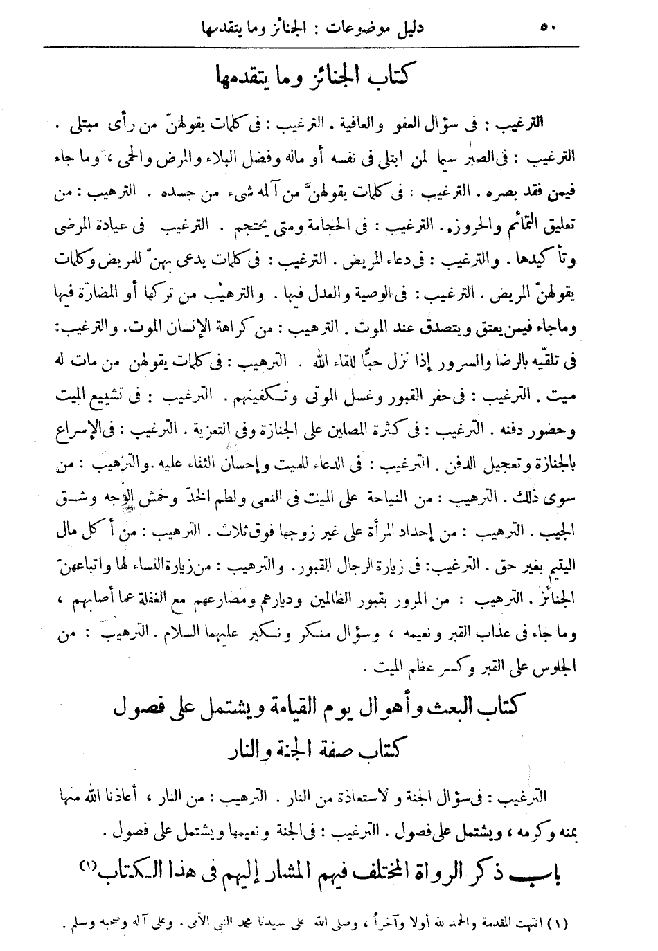 الترغيب: في سؤال الجنة والاستعاذة من النار. الترهيب: من النار، أعاذنا الله منها بمنه وكرمه، ويشتمل على فصول. الترغيب في الجنة ونعيمها في الجنة ويشتمل على فصول.
