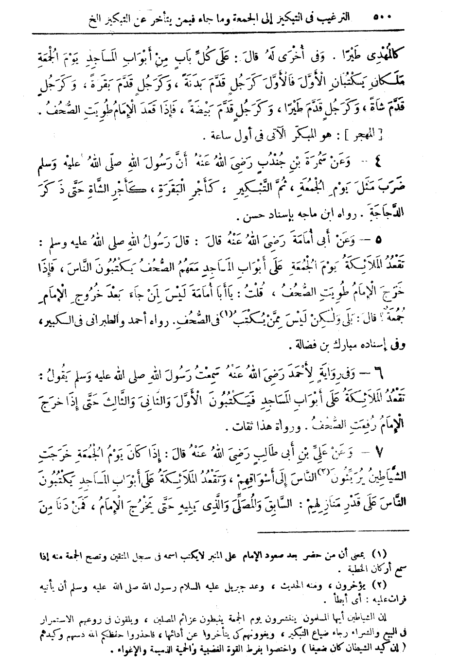 الترغيب في التبكير إلى الجمعة وماجاء فيمن يتأخر عن التبكير الخ