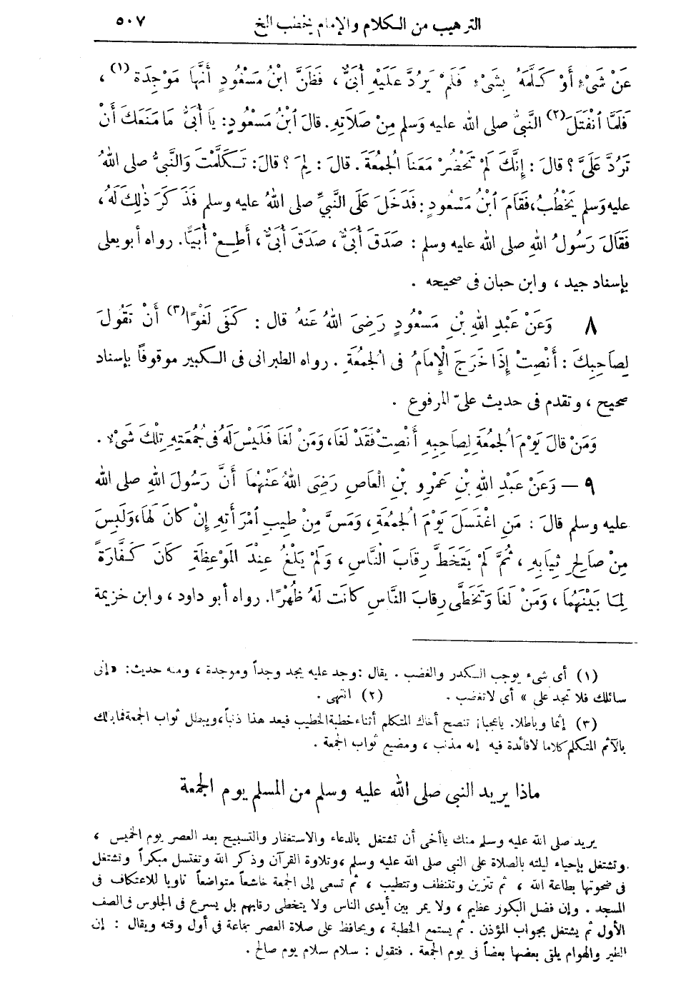 (¬3) إثما وباطلا. يا عجبا! تنصح أخاك المتكلم أثناء خطبة الخطيب فيعد هذا ذنباً، ويبطل ثواب الجمعة فما بالك بالآثم المتكلم كلاما لا فائدة فيه إنه مذنب، ومضيع ثواب الجمعة.
