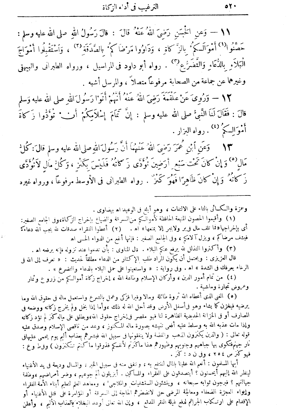 12 - وروى عن علقمة رضي الله عنه أنهم أتوا رسول الله صلى الله عليه وسلم قال: فقال لنا النبى صلى الله عليه وسلم: إن تمام إسلامكم أن تُؤدُّوا زكاة أموالكم (¬4). رواه البزار.