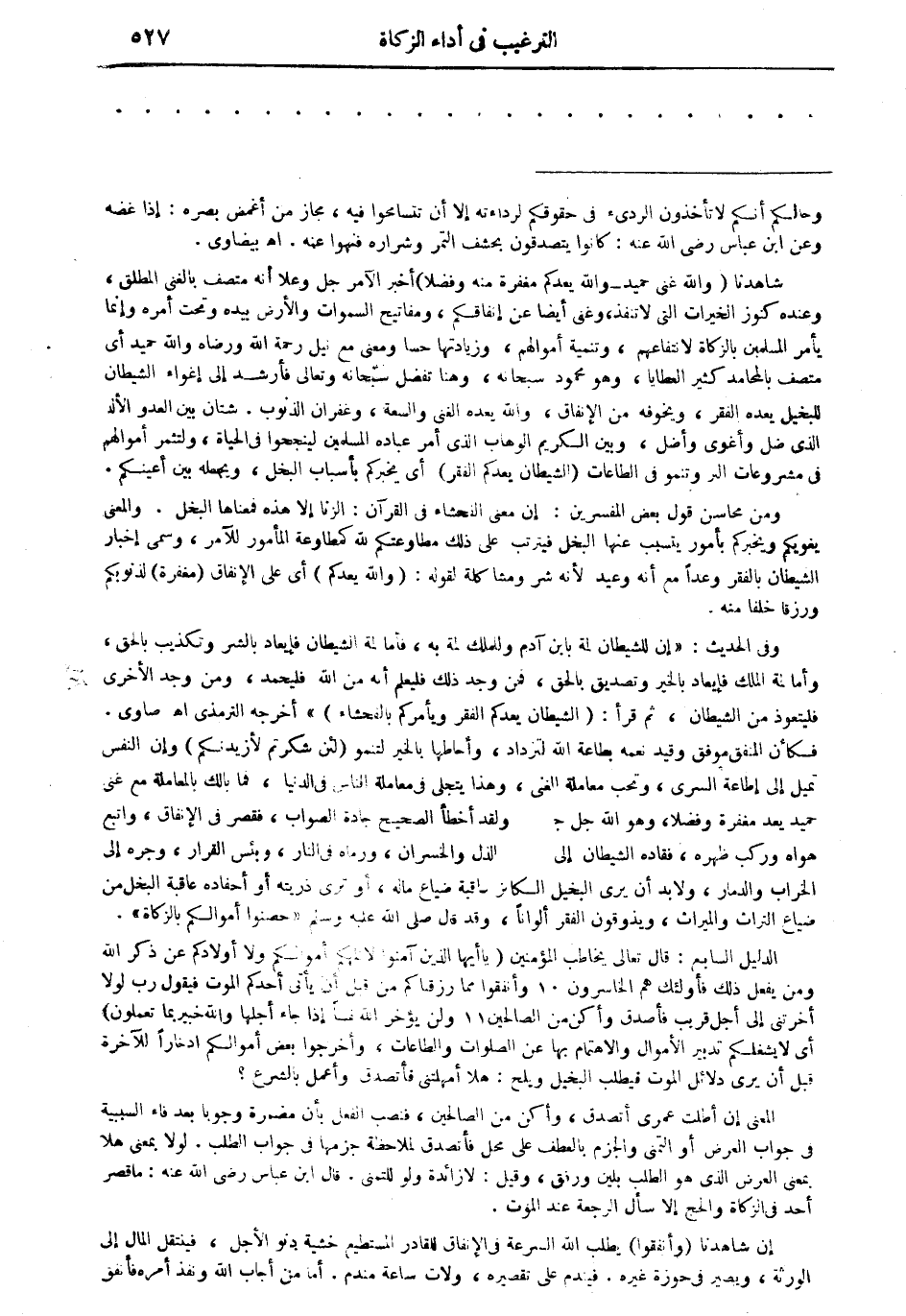 شاهدنا (والله غنى حميد - والله يعدكم مغفرة منه وفضلا) أخبر الآمر جل وعلا أنه متصف بالغنى المطلق، وعنده كنوز الخيرات التى لاتنفذ، وغنى أيضا عن إنفاقهم، ومفاتيح السموات والأرض بيده وتحت أمره وإنما يأمر المسلمين بالزكاة لانتفاعهم، وتنمية أموالهم، وزيادتها حسا ومعنى مع نيل رحمة الله ورضاه والله حميد أي متصف بالمحامد كثير العطايا، وهو محمود سبحانه، وهنا تفضل سبحانه وتعالى فأرشد إلى إغواء الشيطان للبخيل يعده الفقر، ويخوفه من الإنفاق، والله يعده الغنى والسعة، وغفران الذنوب. شتان بين العدو الألد الذى ضل وأغوى وأضل، وبين الكريم الوهاب الذى أمر عباده المسلمين لينجحوا في الحياة، ولتثمر أموالهم في مشروعات البر وتنمو في الطاعات (الشيطان يعدكم الفقر) أي يخبركم بأسباب البخل، ويجعله بين أعينكم.