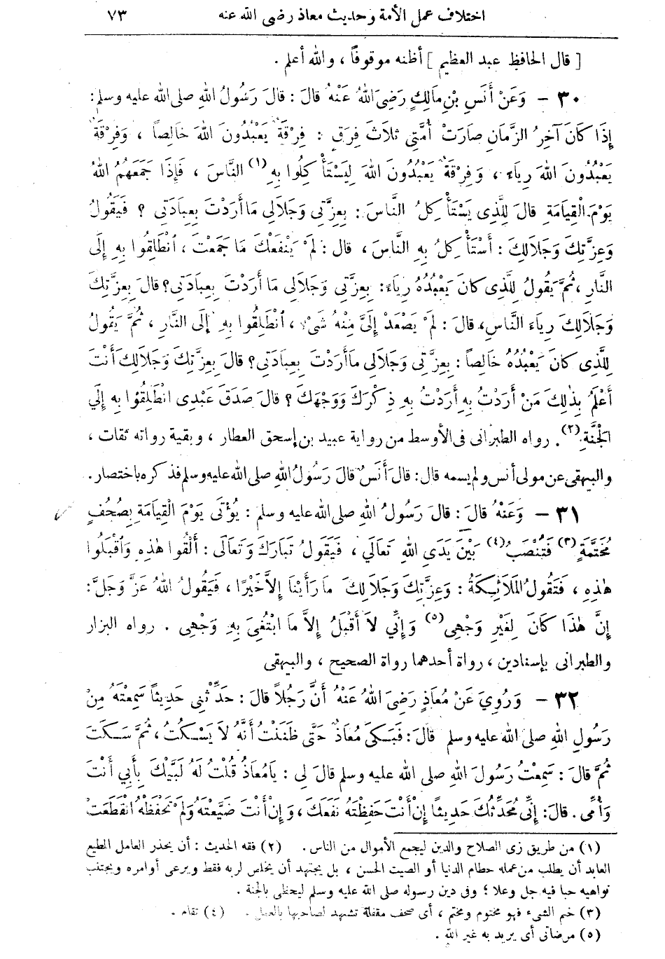 اختلاف عمل الأمة وحديث معاذ رضى الله عنه