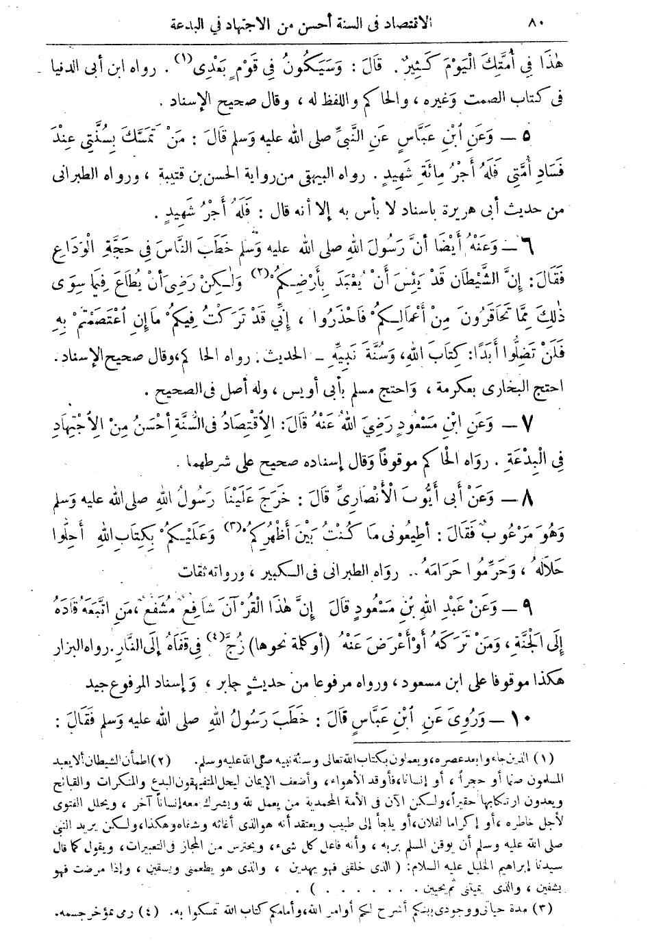 7 - وعن ابن مسعود رضي الله عنه قال: الاقتصاد في السنة أحسن من الاجتهاد في البدعة. رواه الحاكم موقوفاً وقال إسناده صحيح على شرطهما.