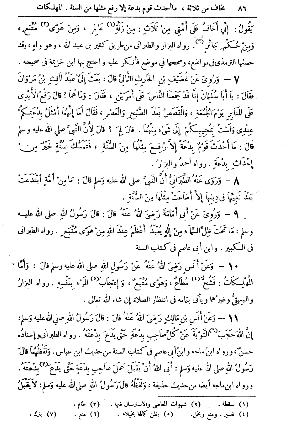 8 - وروى عنه الطبراني أن النبى صلى الله عليه وسلم قال: ما من أمة ابتدعت بعد نبيها في دينها إلا أضاعت مثلها من السنة.