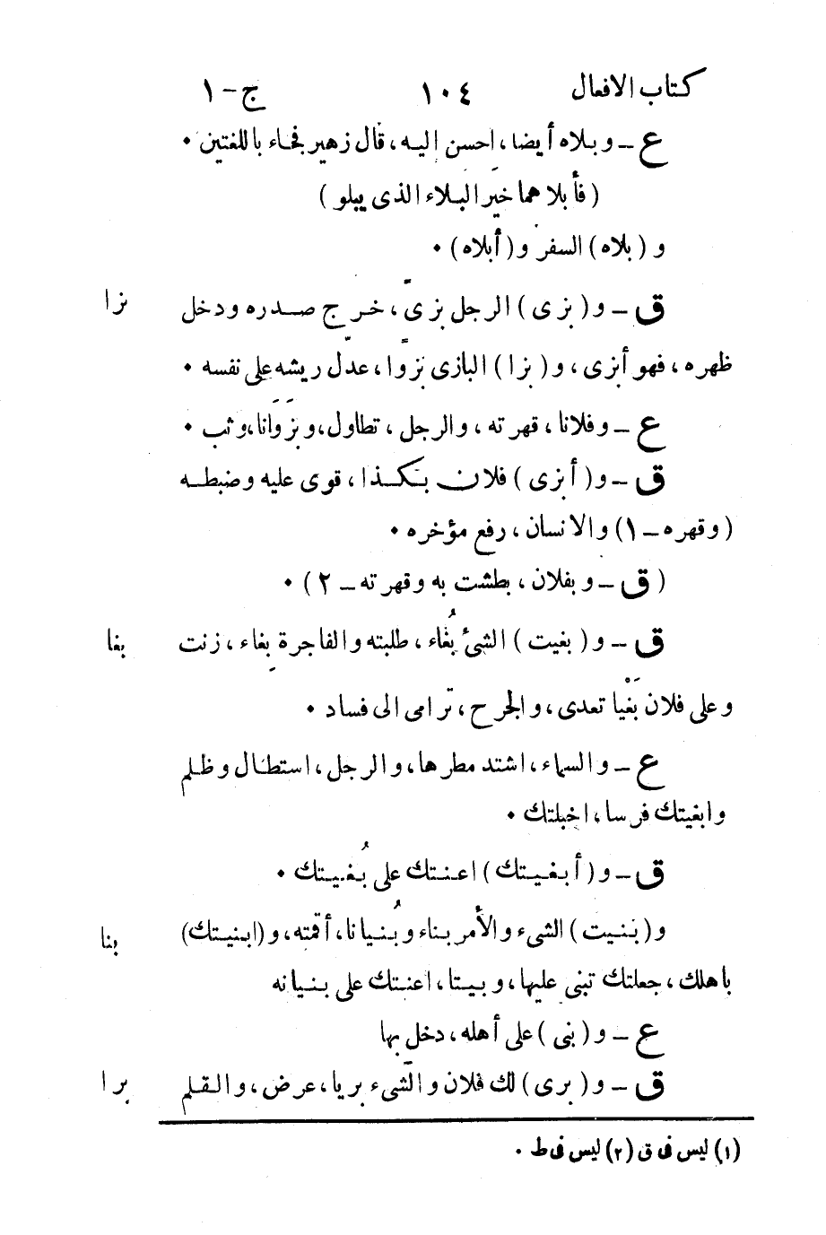 ع - والسماء اشتد مطرها والرجل استطال وظلم وأبغيتك فرساً أخبلتك.