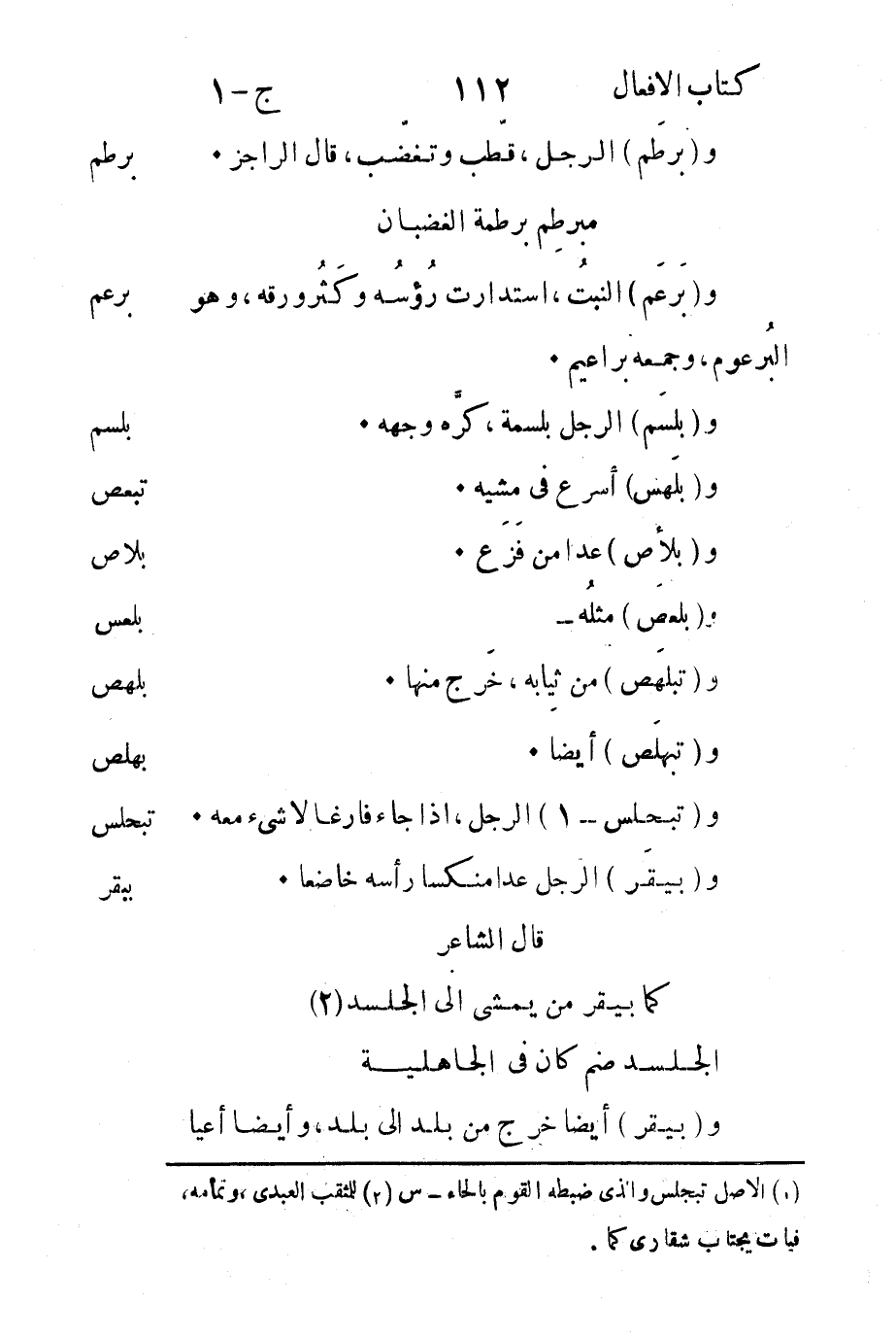 1 الأصل تبجلس والذي ضبطه القوم بالحاء- س.