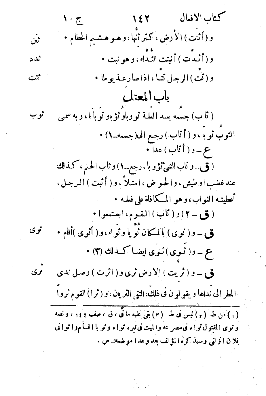 2 بقي عليه ما في، ق، صف144، ونصه وثوى المقتول ثواء في مصرعه والميت في قبره ثواء وثويا أقام واثواني فلان انزلني وسيذكره المؤلف بعد وهذا موضعه – س.