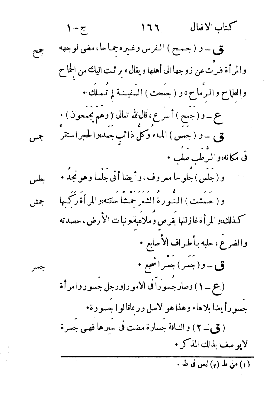 "ع-1" وصار جُسوراً في الأمور "ورجل جَسور وامرأة جَسور أيضاً بلاهاء وهذا هو الأصل وربما قالوا جَسورة.