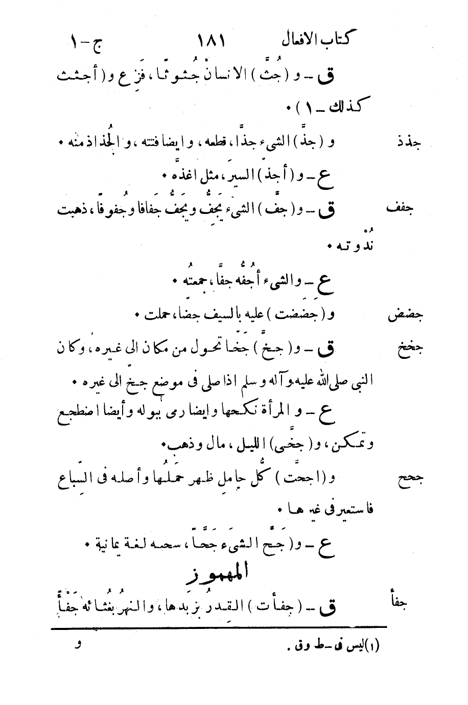 ع - والشيْ أجُفُّه جفَّا جمعتُه.