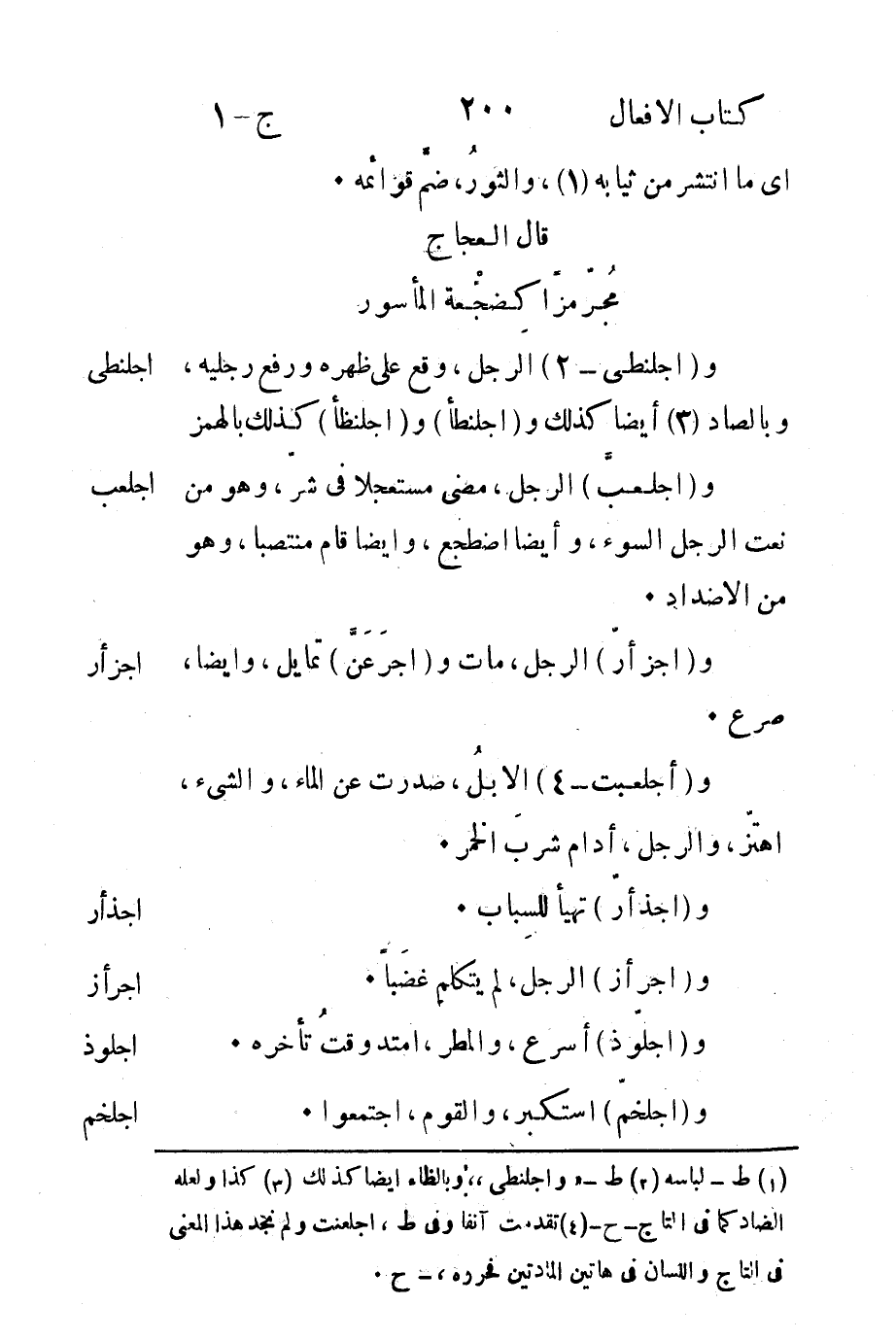 4 تقدمت آنفا وفي ط، اجلعنت ولم نجد هذا المعنى في التاج واللسان في هاتين المادتين فحرره، - ح.