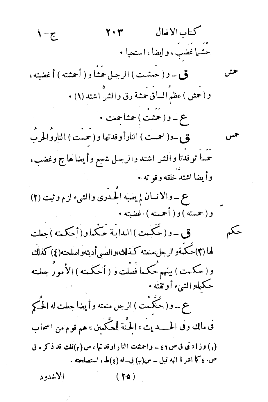 حكم ق- و"حَكَمت" الدابَة حَكْما و"أحكمته" جعلت لها3 حَكَمَة والرجل منعته كذلك والصبي أدبته وأصلحته4 كذلك و"حكمت" بينهم حكماً فَصْلت و"أحكمته" الأمورُ جعلته حكيما والشيء أوثقته.