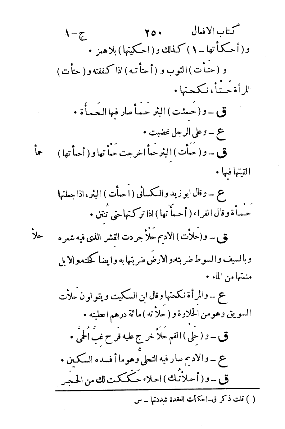 1 قلت ذكر ق- احكأت العقدة شددتها – س.