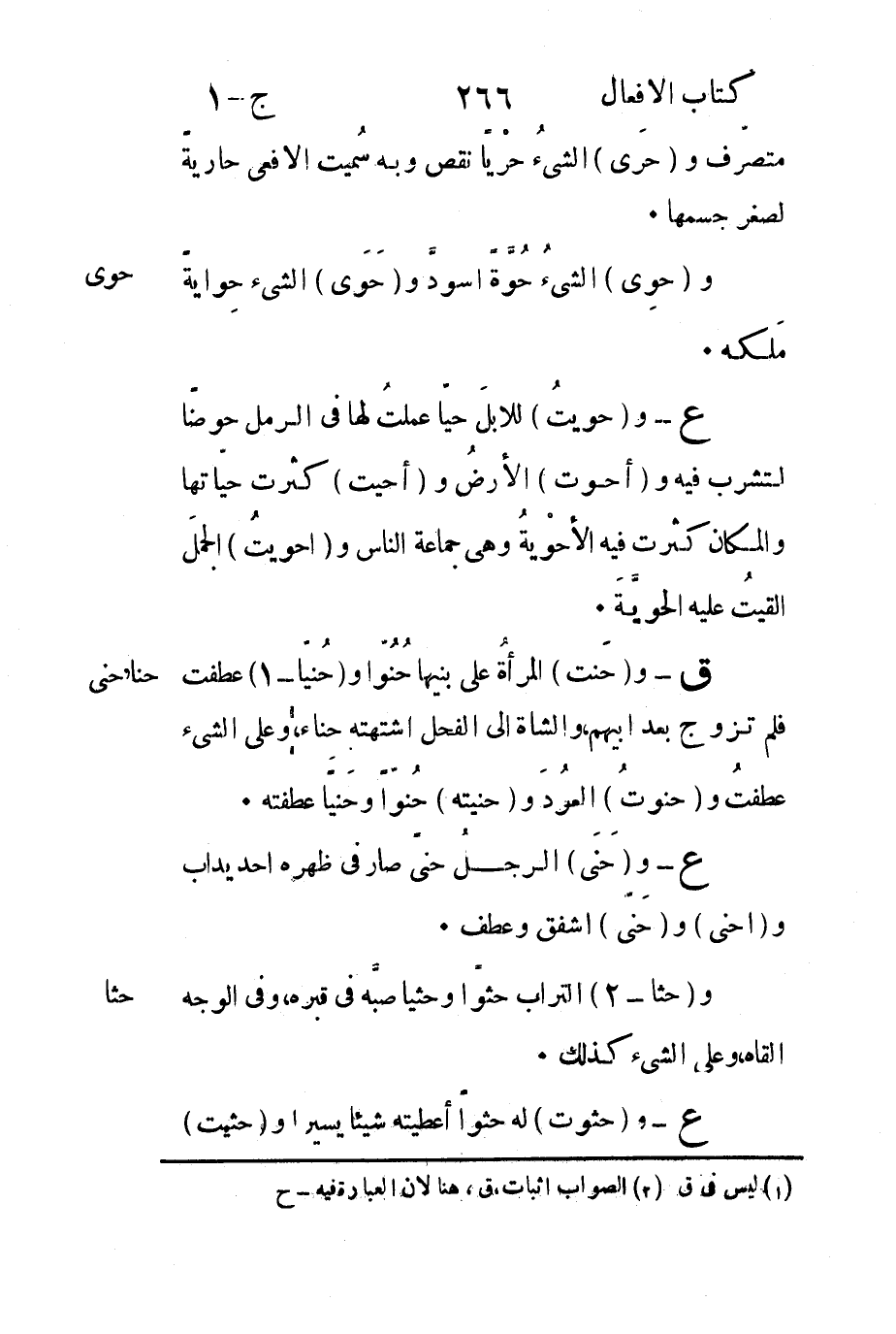 ع- و"حويتُ" للإبلَ حيّاً عملتُ لها في الرمل حوضاً لتشرب فيه و"أحوت" الأرضُ و"أحيت" كثرت حياتها والمكان كثرت فيه الأحوْيةُ وهي جماعة الناس و"أحويتُ" الجملَ ألقيتُ عليهالحويَّةَ.
