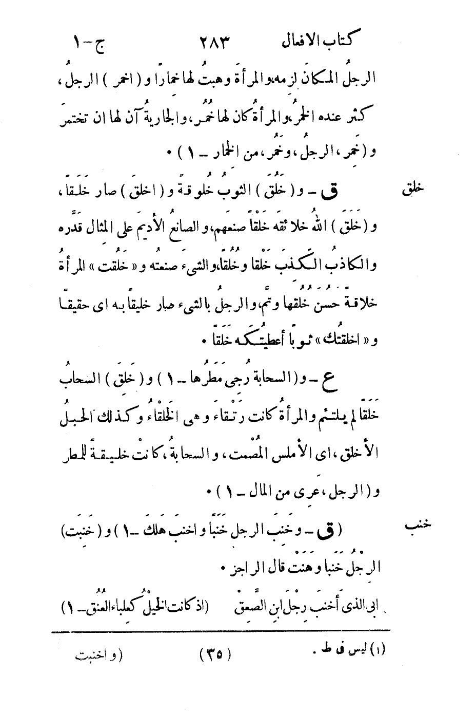 خلق ق- و"خَلُقَ" الثوبُ خُلوقةً و"أخلقَ" صار خَلَقاً و"خَلَقَ" اللهُ خلائقَه خَلْقاً صنعَهم والصانعُ الأديمَ على المِثال قَدَّره والكاذبُ الكَذِبَ خَلْقاً وخُلُقاً والشيءَ صنعتُه و"خَلُقت" المرأةُ خلاقةً حَسُنَ خُلُقها وتمَّ والرجلُ بالشيء صار خليقاً به أي حقيقاً و"أخلقتُك" ثوباً أعطيتُكَه خَلَقاً.