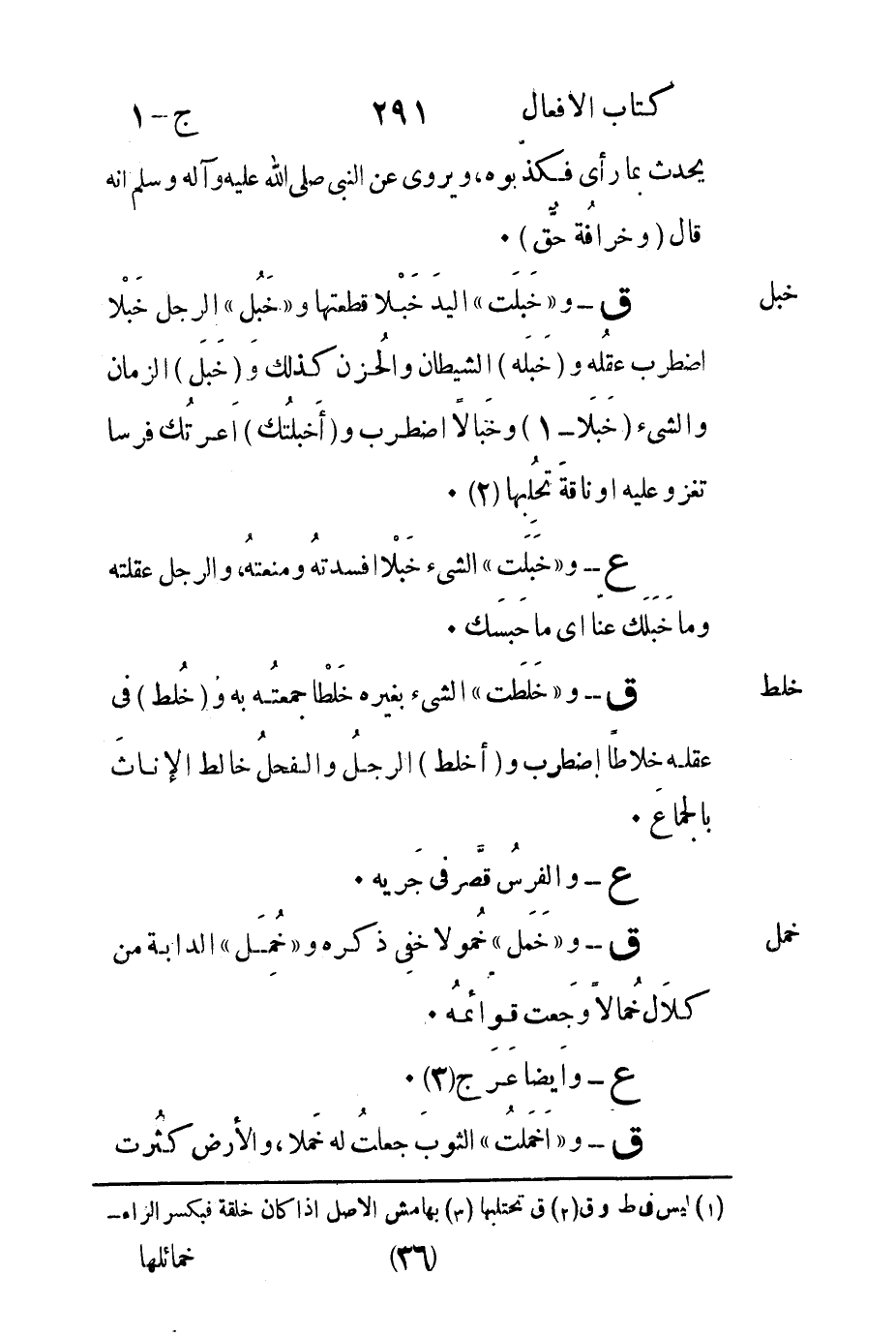 خبل ق- و"خَبلَت" اليدَ خَبْلاً قطعتها خَبُل الرِجل خَبْلاً اضطرب عقلُه و"خَبلَه" الشيطان والحُزن كذلك و"خَبَل" الزمان والشىء "خَبَلاً-1" وخَبالاً اضطرب و"أخبلتُك" أعرتُك فرساً تغزو عليه أو ناقةَ تحلُبِها2